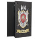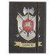 Fügen Sie Ihren Familiennamen dieser mittelalterlichen Fantasie Ritter-Kampfrüstung, Klinge und Axt, Familienhausdrache-Schild-Wappen hinzu.