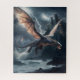 Das Bild zeigt einen majestätischen Drachen, der in einer stürmischen Nacht über eine felsige Küste fliegt. Das Ganze strahlt Eile, Mysterium und Horror aus, zeichne Aufmerksamkeit und lädt Sie ein, diese magische Vision zu entdecken.