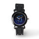 Das Design dieser eWatchFactory Glitzer Watch ist ein kurbelnder, blauer Spikey Drache, der vor einem Nachthimmel mit der Draco Sternkonstellation über Flammen von Blau abgleitet.
