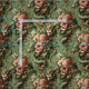 Ein zartes, serpentines Gestell schlängelt sich durch einen Strauß von üppigen Pfannkuchen und zarten Orchideen, die in minztönen Dekadenz verstopft sind. Mit Hörnern gekrönt und Krallen in Blumensträuchern geschmückt, trägt dieses Tier seine Eleganz wie Rüstung. Ideal für Polster, Kleidung oder Kleidung, die monströse Grandeur mit opulentem Charme verbinden.