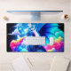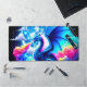 Ce tapis de bureau en imaginaire a un design dragon dessus.
