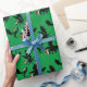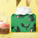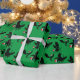 Drei phantastische Weihnachtsdrachen fliegen in roten Weihnachtsmannmützen auf niedlichem grünem Umhüllungspapier herum. Ihre ausgestreckten Flügel lassen sie wie Ferienhäuser aussehen. Ein phantastisches Geschenk für einen Drachengegenstandssammler.