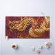 Le tapis représente l'image d'un dragon doré sur un arrière - plan rouge. Ce serait un tapis génial pour quiconque aime les dragons !