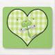 Niedlicher Drache fliegt in einem süßen, grünen Gingham-Herz. Originelles Design von Christie Black von Kreationen aus dem Herzen.