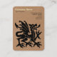 Eine Visitenkartenvorlage mit einem fetten, heraldischen Drachensymbol. Firmenname, Geschäftstyp und Adresse auf der Vorderseite mit Namen, Jobtitel, Telefonie, Web- und E-Mail-Adressen auf der Rückseite, mit dem gleichen Layout.