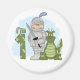 Dieses Fantasy-Thema Kinder ersten Geburtstag Design zeigt einen niedlichen Ritter in glänzender Rüstung mit Schwert und seinem treuen (treuen?) kleinen grünen Drachen, mit einer großen Zahl 1.