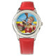 Kinderuhr aus Edelstahl mit rotem Lederarmband
