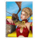 3D digitale Darstellung einer schönen Drachenlady mit einem kleinen Drachen auf ihrem Arm auf einer märchenhaften Burg und einem blauen Himmelshintergrund