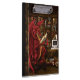 Roter Drache saß in seinem Computer und las ein Buch. Hinter ihm befinden sich Podcasting-Geräte und ein Computer mit all seinen Schätzen um ihn herum.