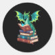 Dragon Reading Books Fantasy Lovers Mythical Creat Runder Aufkleber