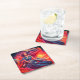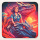Diese Untersetzer haben eine Frau, die mit einem Drachen auf sie reitet.