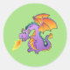 Aufkleber in kleiner Rundform mit niedlichem lila flammendem Drachenprint. Anpassen oder kaufen, wie es ist.