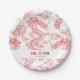 Lassen Sie sich von diesen drachenspezifischen Tellern beeindrucken. Im Hintergrund eines von Wolken umgebenen Drachen zeichnet sich ein lebendiges rot-weißes Muster ab. Die Namen des lieblichen Paares sind in der unteren Hälfte des Feldes zu finden. Ein Symbol, das doppeltes Glück bedeutet, liegt zwischen beiden Namen.
