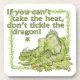 Illustration eines kleinen Drachen, der mit einem offenen Auge schläft, mit dem Text: "Wenn du die Hitze nicht nehmen kannst, kitzle nicht den Drachen!" Passen Sie Ihre E-Mails für eine motivierend oder inspirierende Nachricht an.