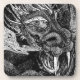 Ein Drache lauert in einem tiefen Untergrund in einer Höhle. Untersetzer Set mit einem Schwarz-Weiß-Design für Sie individuell zu gestalten, um mit Ihrem eigenen Text, Bildern und Ideen. Eine originelle Tinte, die von Jess Perry gezeichnet wird.