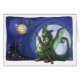 Wenn Sie Drachen Liebe, werden Sie Liebe dieses lustige Dragon Watch Artwork von Traci Van Wagoner gemalt. Diese Fantasy-Illustration zeigt einen grünen Drachen, der nachts eine gelbe Papierlaterne hält, die gegen einen Vollmond mit einer Burg dahinter silhouiert ist. Im Hintergrund führt eine Schlucht von Drachen, die Laternen tragen. Ich Liebe Drachen, Nachtszenen und die Idee von Drachen auf dem falschen Fuß. Drachen herrschen!