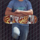 Dragoncircle - Chrome mit Gold Fire on Red Skateboard