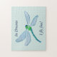 Dieses Puzzle wird von einer schönen, blauen und grünen Libelle geschmückt! Passen Sie den Anzug an, indem Sie selbst Text und Hintergrundfarbe hinzufügen oder ändern.