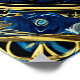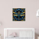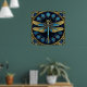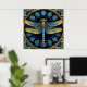 Illustration détaillée d'une libellule aux ailes colorées entourée de motifs décoratifs en or et en bleu, mettant en valeur l'élégance artistique et la beauté organique de la nature.
