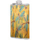 Herrliche blaue und bronzene geflügelten Libellen fliegen auf einem goldgelben Hintergrund.
