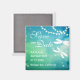 Einzigartige und wunderschöne Libelle speichern die Dattelmagnete, die in blau und grün illustriert sind. Dieses elegante Template-Design zeigt die weißen Silhouetten von zwei Libellen, die zusammen mit romantischen, leuchtenden Lichterketten an einem warmen Nachthimmel mit Sternen fliegen. Diese benutzerdefinierten blau und grün rettend Datums-Magnete können leicht mit Ihren eigenen Informationen personalisiert werden. Kategorie: Save the Date Drachenfliegendesigns; Hochzeitsideen für Libellen. Farben: aquamarin blau, grün und weiß.