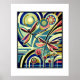 Dieses abstrakte Digitalgemälde vereint die Eleganz und Energie zweier lebendiger Libellen, deren Flügel in Rosa- und Rottönen schimmern. Sie gleiten anmutig über einen feinen, geometrischen Hintergrund, wo Blau, Gelb und Grün ein dynamisches Zusammenspiel kontrastreicher Farben schaffen. Inspiriert durch den Art-Déco-Stil verbindet das Design scharfe Linien und geometrische Formen mit Bio Motiven wie zarte Blume und fließende Kurven. Dieser Kontrast zwischen starrer Geometrie und natürlichen Elementen schafft eine harmonische Komposition, die ein Gefühl von Bewegung, Freiheit und zeitloser Raffinesse hervorruft.