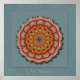 Ein abstraktes, mandaläisches Design, das aus den Farben und Mustern in den Flügeln eines Pennant Dragonfly in den Farben Pfirsich, Rosa, Gold und Türkis erschaffen wurde. In der Mitte symbolisiert ein winziges Om-Symbol, das buddhistische Traditionen ist, oft die wesentliche Schwingung des Universums. "Om Shanti" wird gewöhnlich als "Kann es Frieden geben" übersetzt.