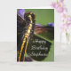 Ein wunderschönes Makrofoto eines Libellen, das in der Nähe einer lila bärtigen Iris flattert. Dieses wunderbare Bild sieht auf Grußkarten und Postkarten so schön aus, und Sie können mit jeder Hintergrundfarbe oder Text erstellen. (ausgewählt mehrere Produkte)