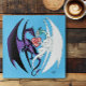 Ein lila und ein weißer Drache in der Luft bilden ein Herz mit ihren Flügeln und ein keltisch rosa ein rotes Herz zwischen ihnen in einem Hintergrund von blau.