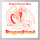 Atemberaubendes Poster einer kühnen und schönen Dame mit ihrem Drachenfreund. Lebhafte rote Tinte auf einem dunkelweißen Hintergrund mit feuerfarbenen Buchstaben, die erklären, dass die Dame Freund aller Drachen ist.