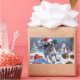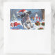 Drahthaar Pointing Griffon in Snow Christmas Hat Rechteckiger Aufkleber