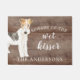 Funny Vorsicht vor dem nassen Kisser" Wire Hair Fox Terrier Dog Türmatte Set auf einem rustikalen Imitat Hintergrund. Besuchen Sie unseren Shop, um eine große Auswahl an Hundebrotten zu sehen