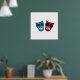 Die beiden Masken, die mit dem Drama verbunden sind, stellen die traditionelle Gattungsaufteilung zwischen Komödie und Tragödie dar. Sie sind Symbole der alten griechischen Musen, Thalia und Melpomene. Thalia war die Maus der Komödie (das lachende Gesicht), während Melpomene die Maus der Tragödie (das weinende Gesicht).