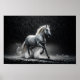 Dramatic White Horse Galloping in Rain Poster