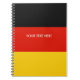 Drapeau allemand de journal de carnet de notes à spirale de l'Allemagne. Bureau et fournitures scolaires de douane pour les femmes et les enfants des hommes. Grand pour rendre compte, en gardant le budget, les devoirs, le bureau, les affaires, la société, le magasin, la partie oktoberfest, la planification, le mariage, l'enseignement etc. ajoutez votre propre texte sur option. Accessoires de papier à lettres. Conception transmissible à d'autres produits.
