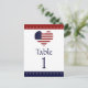 Belle USA drapeau coeur patriotique ou militaire thème carte de numéro de table de fête. Ces cartes de numéro de table patriotiques colorées et vibrantes sont un merveilleux ajout à toute fête patriotique ou à tout parti militaire. Le texte est en modèle sur cette page prêt pour vous à ajouter vos numéros de table. Le design est orné d'un coeur de drapeau américain sur un arrière - plan blanc, dans les couleurs rouge, blanc et bleu sur un arrière - plan blanc. . Le dessus et le bas de la carte sont rouges et bleus avec des étoiles blanches. Un complément merveilleux à vos tables de fête patriotique ! Cette conception correspond à beaucoup de nos invitations patriotiques et militaires que nous vendons dans notre magasin. Pour plus de styles et de modèles de cartes patriotiques ou militaires, d'invitations, de timbres et de cadeaux, visitez notre magasin!