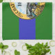 Serviette de cuisine avec le drapeau de Chattanooga, Tennessee. Un drapeau vert et bleu avec le sceau de la ville au centre