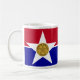 Mug avec drapeau de la ville de Dallas, Texas; drapeau avec bandes horizontales rouge et bleu avec sceau de la ville à l'intérieur d'une étoile blanche dans le centre