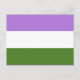 Carte postale avec drapeau de genre avec bandes arc-en-ciel violettes, blanches et vertes; modèle de fierté de genre