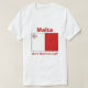 Un titre et un slogan editable accompagne les bandes verticales blanches et rouges d'une croix maltaise à la grue supérieure du drapeau maltais sur l'avant de ce T-shirt. Le dos montre une carte détaillée de Malte.