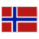 Le drapeau de la Norvège est un rouge avec une croix scandinave bleu indigo fimbriquée en blanc qui s'étend aux bords du drapeau ; la partie verticale de la croix est déplacée vers le côté hissé dans le style du Dannebrog, le drapeau du Danemark.