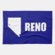 Serviette de cuisine avec drapeau de la ville de Reno, Nevada; drapeau bleu avec forme blanche du Nevada avec étoile symbolisant l'emplacement de Reno à l'intérieur de l'état