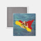 Le drapeau trinacria de Sicilia entouré par la mer magnifique.