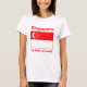 Sur l'avant de cette chemise un titre et un slogan editable accompagne le drapeau singapourien avec son croissant blanc et l'étoile dans une bande rouge au-dessus d'une bande blanche. Le dos montre une carte détaillée de Singapour.