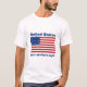 Un titre et un slogan editable accompagne les rayures rouges et blanches des étoiles blanches sur le canton bleu du drapeau américain sur l'avant de ce T-shirt. Le dos montre une carte détaillée des Etats-Unis.