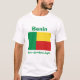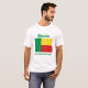 Un titre et un slogan editable accompagne la bande verticale verte à la gauche des bandes horizontales jaunes et rouges du drapeau béninois sur l'avant de ce T-shirt. Le dos montre une carte détaillée du Bénin.
