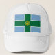 Casquette avec design avec un drapeau du comté historique de Derbyshire, en Angleterre, Grande-Bretagne; drapeau bleu avec une croix verte et un Tudor rose en or dans le centre