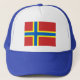 Casquette avec design avec drapeau du comté historique d'Orkney, en Ecosse, Grande-Bretagne; drapeau rouge avec croix nordique bleue et jaune