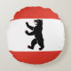 Coussin rond avec drapeau de Berlin, drapeau d'état avec bandes horizontales de rouge et blanc, avec une illustration d'un ours noir au centre