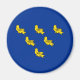 Aimant avec un drapeau du comté historique de Sussex, en Angleterre, Grande-Bretagne; drapeau bleu avec six martlets d'or